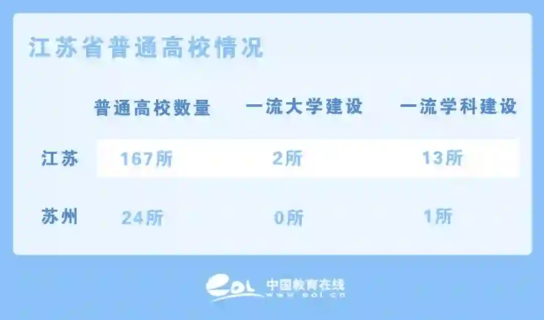 苏州有本科及高职院校24所,其中一所一流学科建设高校(苏州大学)。