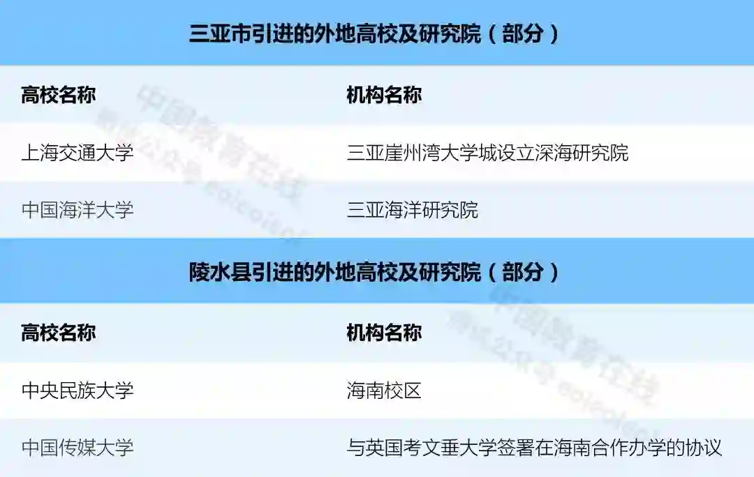 除此之外,海南省引进知名高校的方案还在进一步实施中。