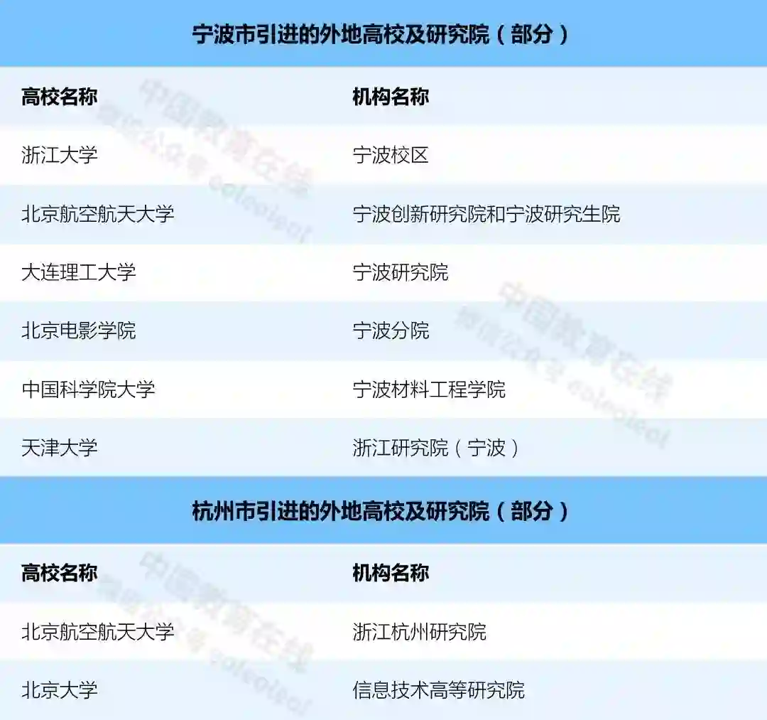 浙江省政府此前下发的《关于推动创新创业高质量发展,打造“双创”升级版的实施意见》表示,到2022年浙江将力争新引进20所左右国内外著名高校,新增10家世界一流科研院所。