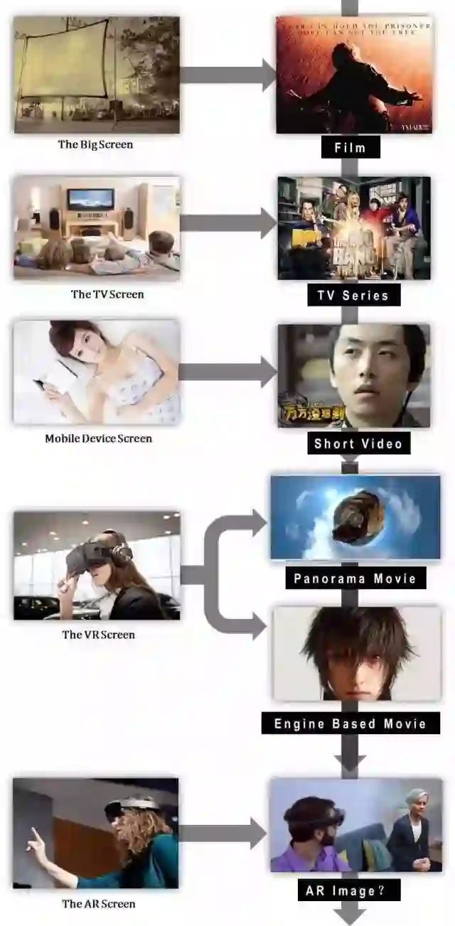 人类以多种感官感知世界,视觉是最重要的一种方式。人类历史上出现的第一块屏幕是电影银幕;紧随其后的电视屏幕脱离了电影院的地点限制,拉近了影像与人们的关系;而移动屏幕的出现,合理化了人们的碎片时间,成为人类生活生存的必备工具。随着AR/VR的发展,人和屏幕的关系发生了变化,出现了第四块屏幕——VR/AR屏。