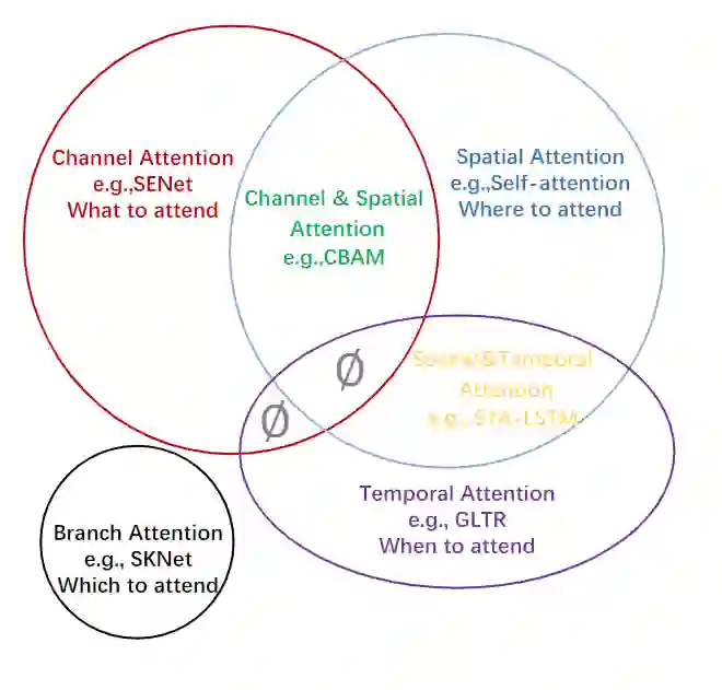 根据这一观察结果,是否可以有一个利用所有类型注意机制的一般性attention block?例如,软选择机制(branch attention)可以根据所执行的特定任务在channel attention、spatial attention和temporal attention之间进行选择。