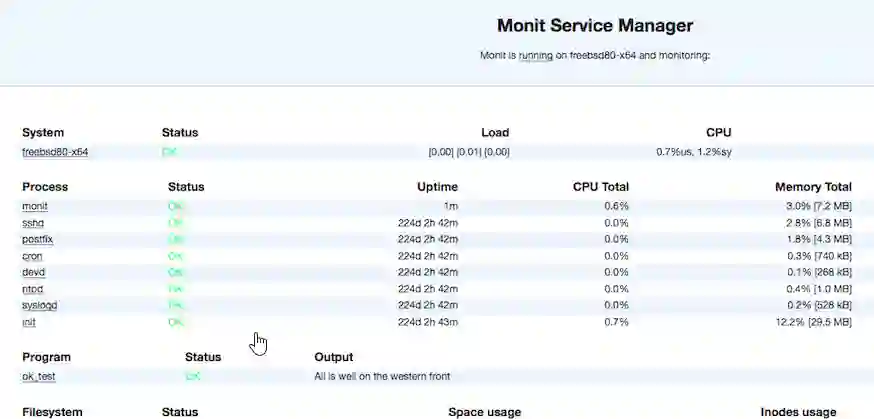Monit 甚至为守护程序提供了一个不错的轻量级 Web 界面,让你一眼就能看到服务器发生了什么:
