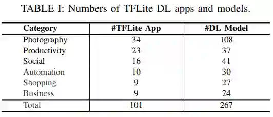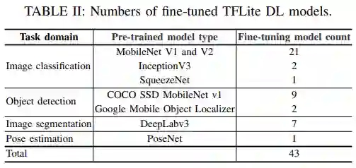 表 1:TFLite DL App 和模型的数量。