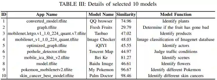 在移动 App 上的 DL 模型之间存在相似性,甚至有一些模型完全一样
