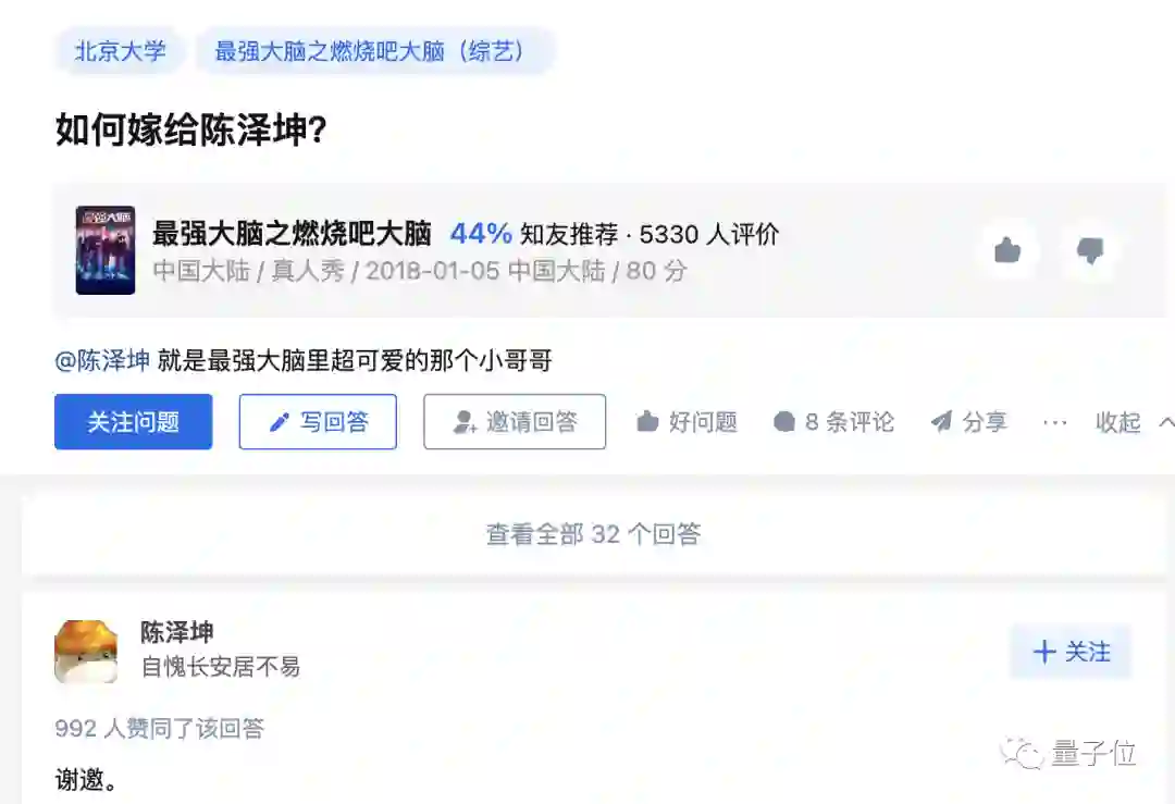 以及,相比两三年前还会常常在知乎皮一下,陈泽坤现如今只在空闲时刷刷热榜,不像曾经,会去回答“如何嫁给陈泽坤”之类的问题了。