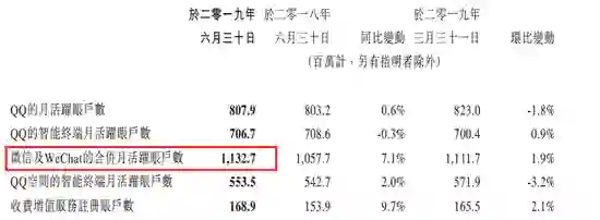 腾讯在社交、游戏、数字内容等擅长领域继续保持优势,其中微信及WeChat的合并月活账户数达11.33亿,同比增长7.1%。QQ的智能终端月活跃账户数为7.07亿,相比去年同期下降0.3%。