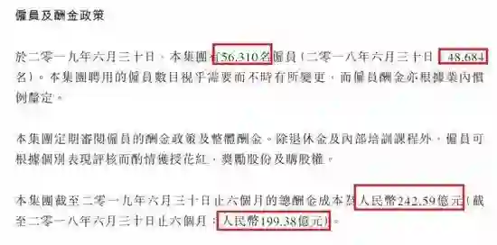 腾讯最新报表显示,2019年上半年薪酬成本是242.59亿元,员工数按5.631万人计算,平均半年薪资是43.08万元。