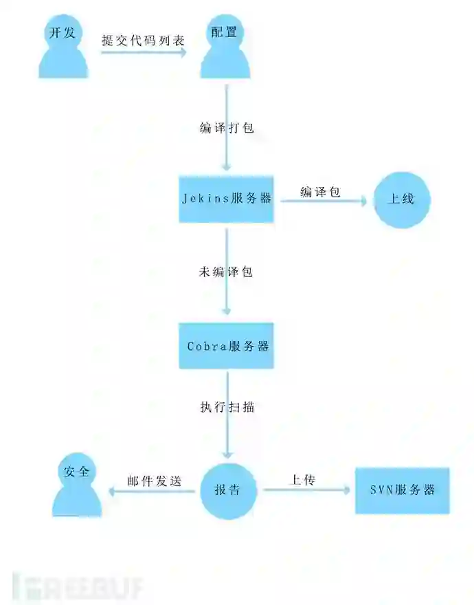 笔者在某甲方运维部负责信息安全,代码审计已经加入到上线流程里面,在没有引入Cobra之前用的是绿色版FortifySCA。公司是Java开发环境,每次上线前都需要开发人员单独把未编译的上线源码打包发送给我,手动执行审计任务,输出报告,上传SVN等一系列操作。