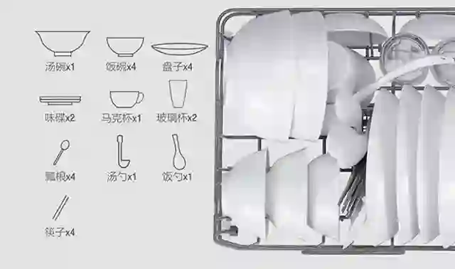 它的置碗架小巧但是安排合理,能够一次性装进22件餐具。