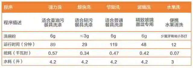 (程序对应洗涤餐具和耗电耗水量请看上图)