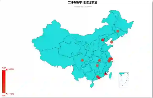 可以看出,北京、上海、深圳的房价大致在同一水平线,而厦门位于第四,广州在第六,最后看一下房价地域图: