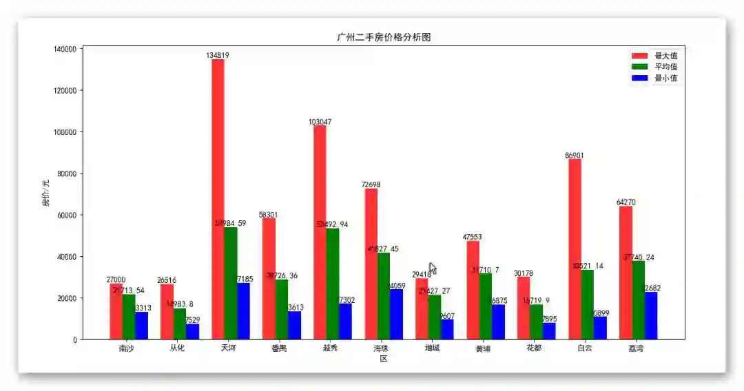通过对二手房作数据分析,得到北上广深等(新)一线城市四地房价的纵向比较,同时对各个城市各个区的房价做横向对比,并将对比结果可视化出来。