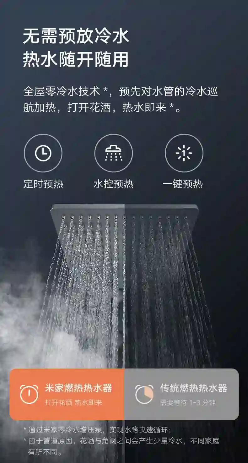 首先是预热问题,这应该已经是所有使用热水器用户的共识,打开水等水热,不仅浪费资源,在冬天更是一种无形的折磨。