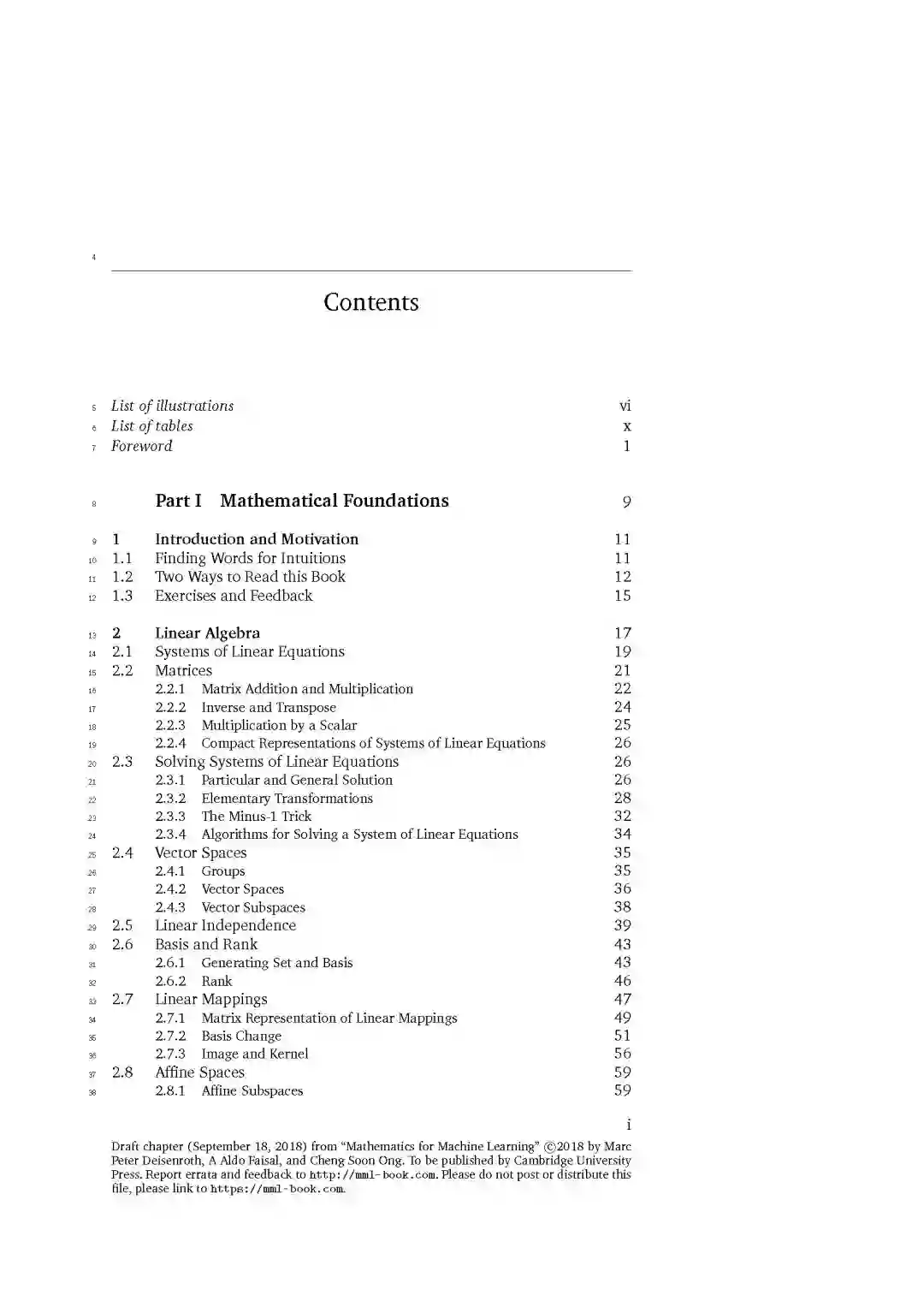 作者希望这本书可以成为一本指导机器学习大量数学基础的指南。作者通过直接指出数学概念在基本机器学习问题中的有用性来激发对数学概念的需求。为了使书简短,许多细节和更先进的概念都被省略了。书中介绍了一些基本概念,以及这些概念如何适用于机器学习的大背景,读者可以找到大量的资源进行进一步研究。对于有数学背景的读者,这本书提供了一个简短但精确的机器学习入门介绍。书中只提供四个代表性的经典的机器学习算法示例。作者关注的是模型本身背后的数学概念,目的是阐明它们的抽象美。作者希望所有的读者都能对机器学习的基本问题有更深入的了解,并将机器学习的实际问题与数学模型的基本选择联系起来。