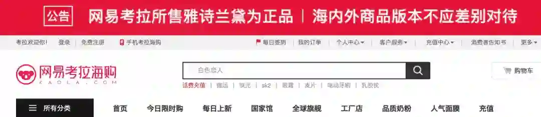 2月8日,网易考拉海购发布声明称,中消协鉴定为“假”的雅诗兰黛ANR眼霜为正品,并质疑中消协的鉴定资质,认为海内外商品版本不应差别对待。