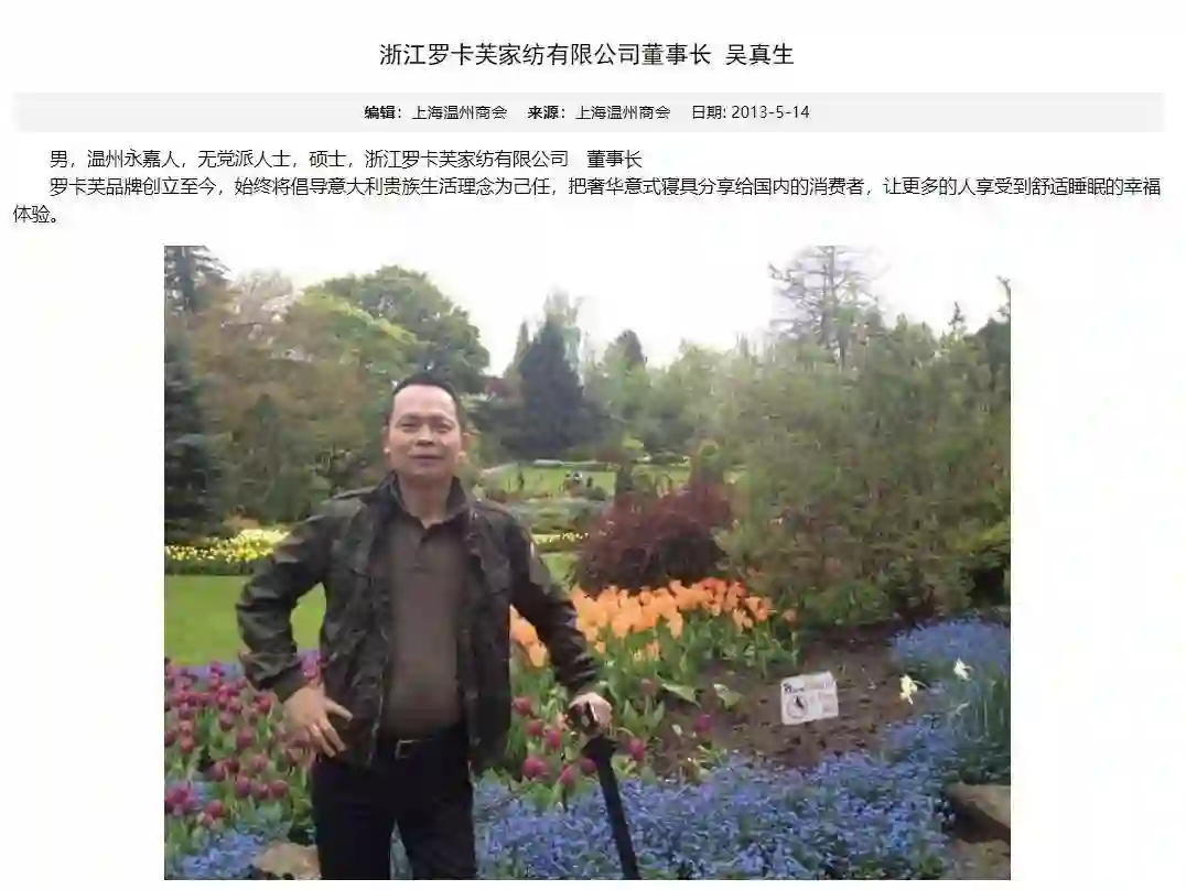 其中,吴真生担任浙江罗卡芙家纺有限公司的董事长。