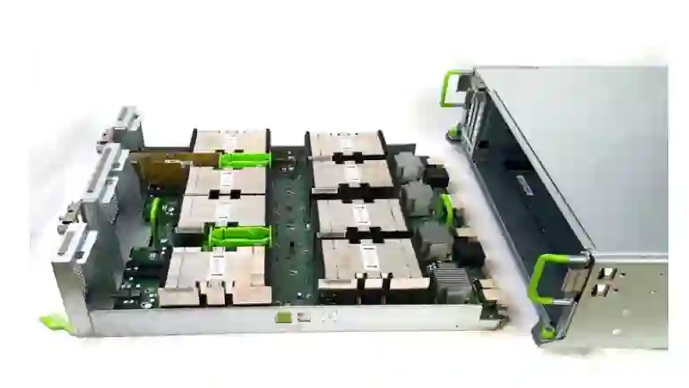 2U Chassis,具有三个计算插槽,支持两种可供选择的服务器类型。一个是单插槽 CPU 服务器(1xCPU),包含 4 个 Monolake 服务器子卡,另一个是双插槽 CPU 服务器(2xCPU)。