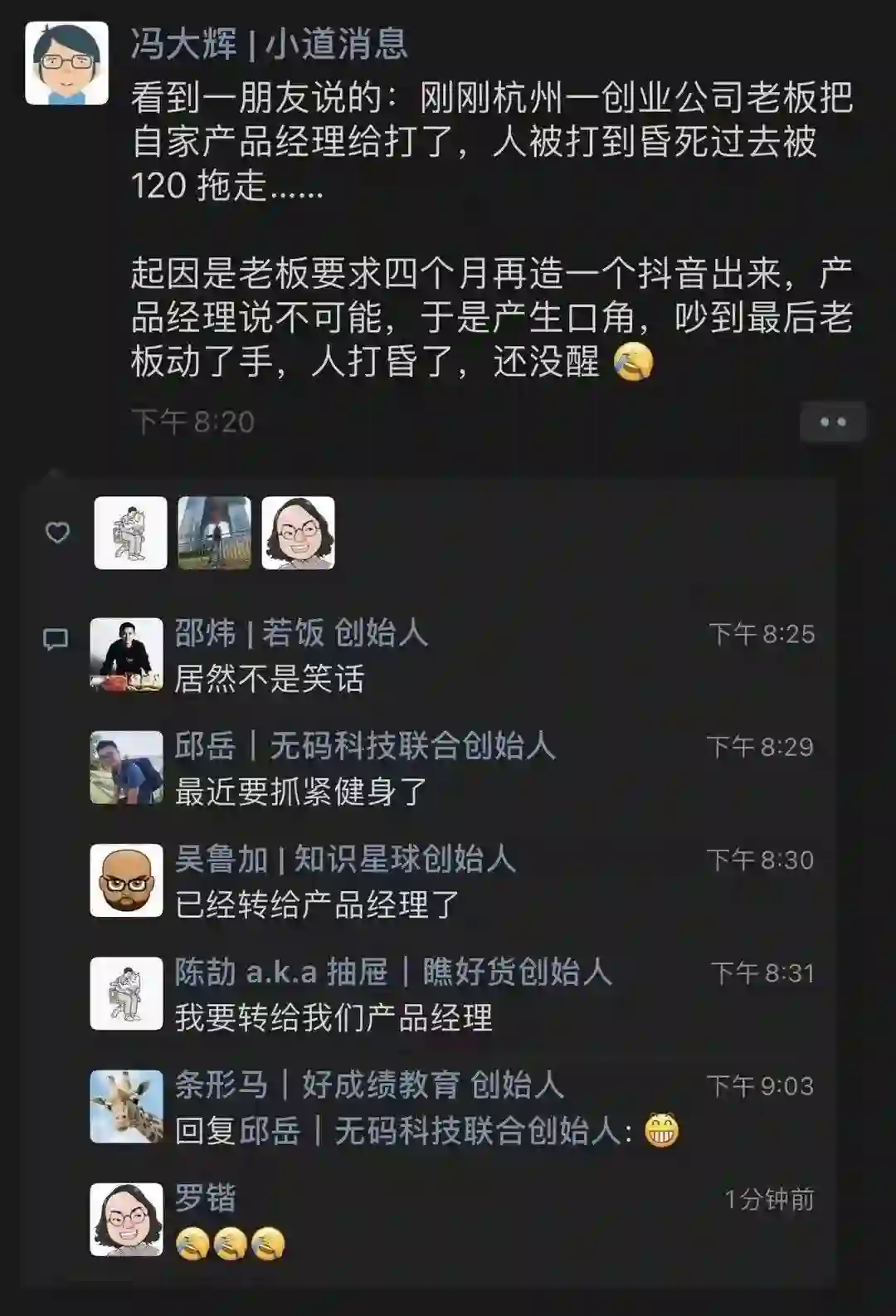 身为一个产品经理,避免不了老板突如其来的要求。看到一个图,老板要求四个月再造一个抖音出来,产品经理说不可能,于是和老板发生了口角。打工人看得血压飙升,猛吸一口氧气。