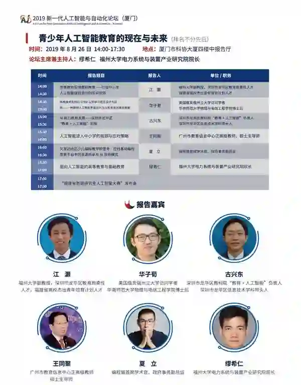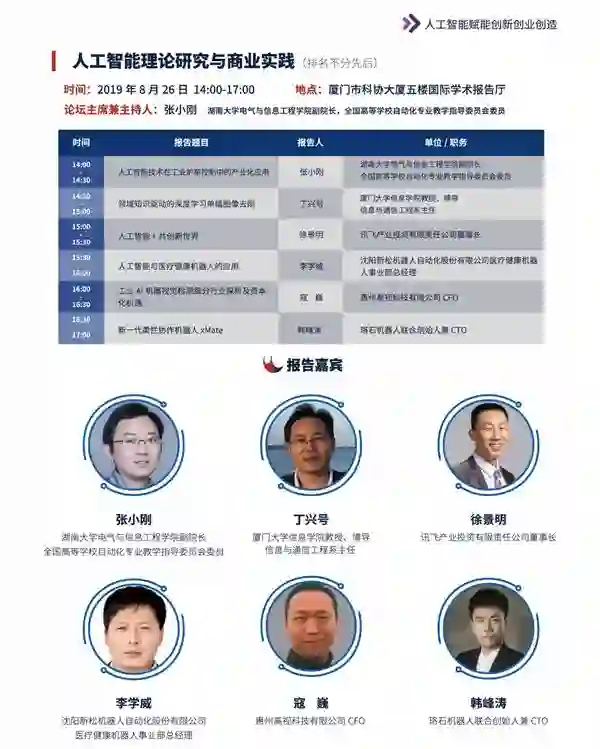 【导读】为响应国家人工智能发展布局,强化人工智能在传统产业升级转型中的引领和支撑作用,2019新一代人工智能与自动化论坛应运而生。为响应政府号召,推动人工智能技术研发与产业紧密对接,推动人工智能领域人才交流,中国自动化学会联合多家单位于2019年8月26日在福建厦门召开2019新一代人工智能与自动化论坛。