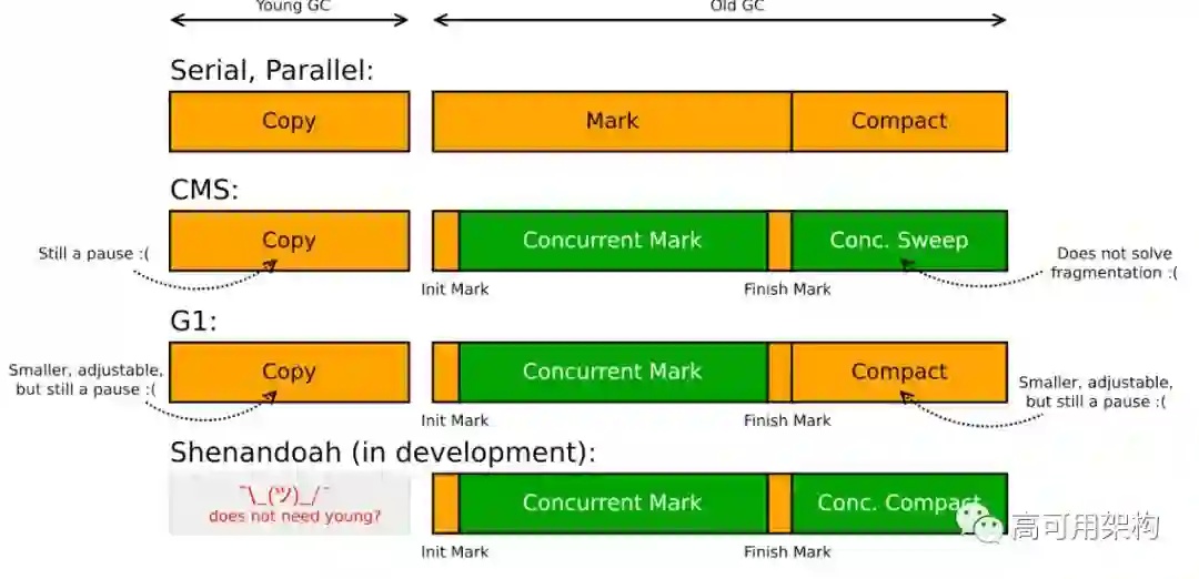 黄色是STW阶段,绿色是并发阶段