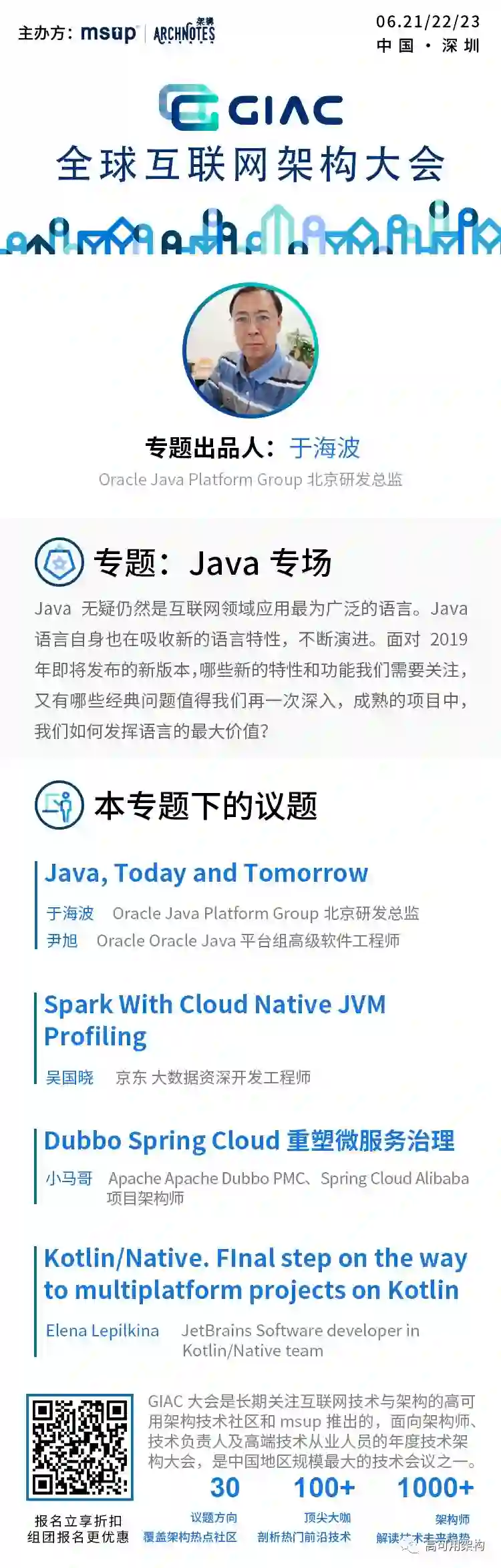 GIAC全球互联网架构大会深圳站将于2019年6月举行,届时有更多Java、JVM等国内外专家相关演讲。参加2019年GIAC深圳站,可以了解业界动态,和业界专家近距离接触。
