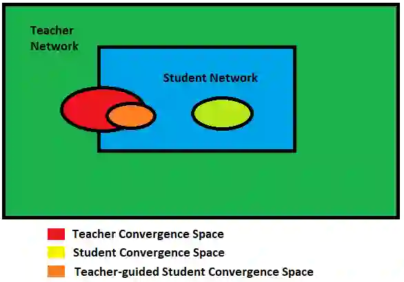 显然,对于更复杂的模型,理论搜索空间要大于较小网络的搜索空间。但是,如果我们假设使用较小的网络可以实现相同(甚至相似)的收敛,则教师网络的收敛空间应与学生网络的解空间重叠。
