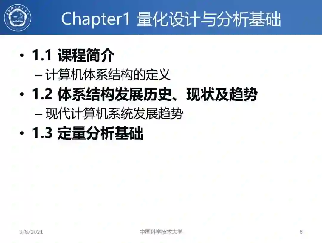 本课程授课60学时,实验30学时。主要讲授计算机系统定量分析基础,回顾指令集设计和基本流水线技术,探讨存储系统优化,指令级并行技术,数据级并行和任务级并行等技术。