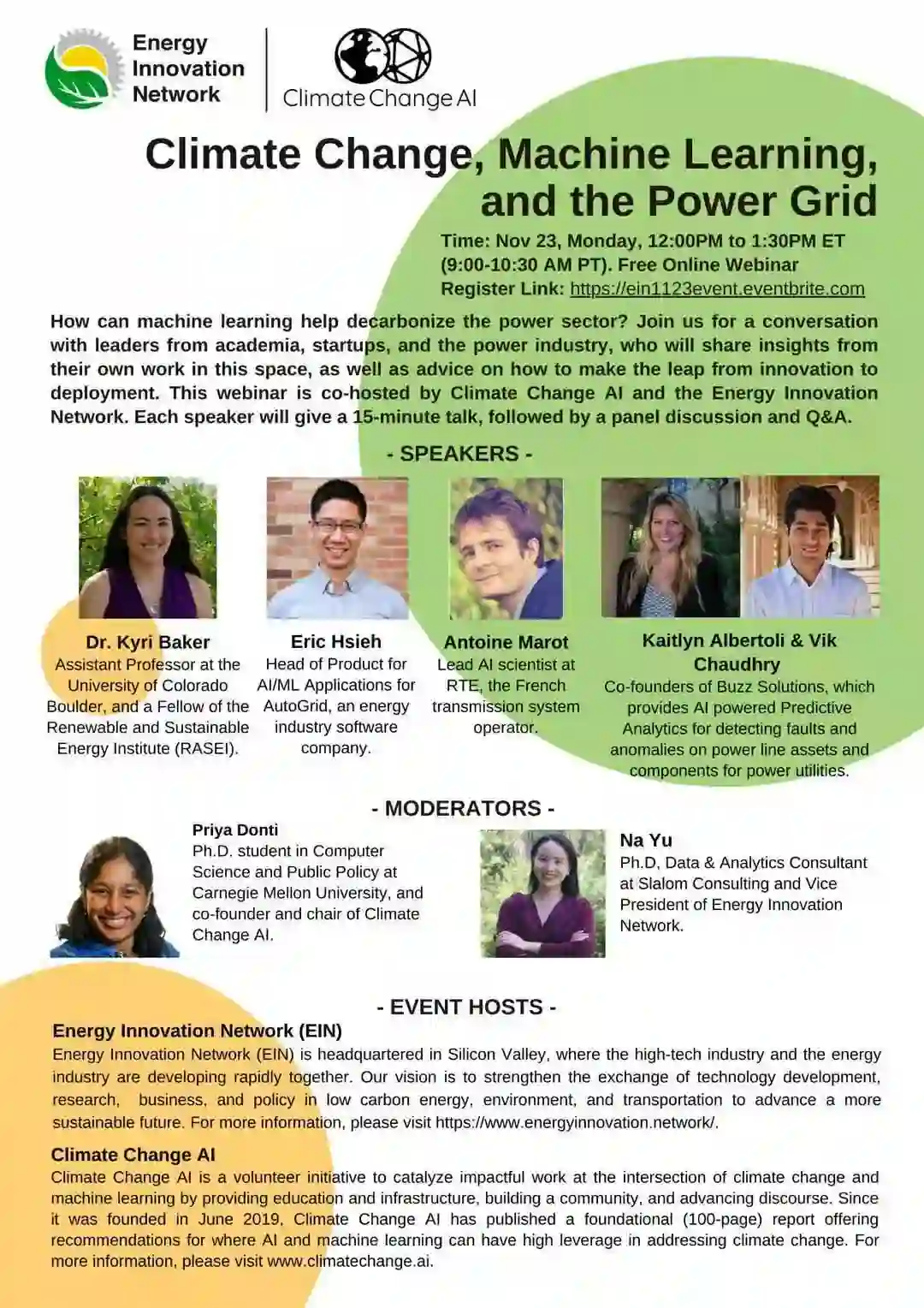 此次活动特别邀请了 5 位来自工业界和学术界的嘉宾:AutoGrid 的人工智能的产品 lead,Buzz Solution 的创始人,Coloroda 大学的助理教授, 以及法国电网公司的首席人工智能科学家。诚挚欢迎大家来参加!