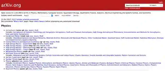ArXiv是一个几乎每位科研工作者都熟悉的开放式的网站。科学家通过在arXiv发表论文的预印本,能迅速被别人访问阅读。自1991年起,arXiv 已经聚集了物理、数学、计算机科学、统计学、定量生物学和金融学等领域的一百多万篇论文。每个工作日几乎都会增加数百篇新的研究论文,包括从希格斯玻色子到量子隐形传态,再到恒星的形成等各个学科。