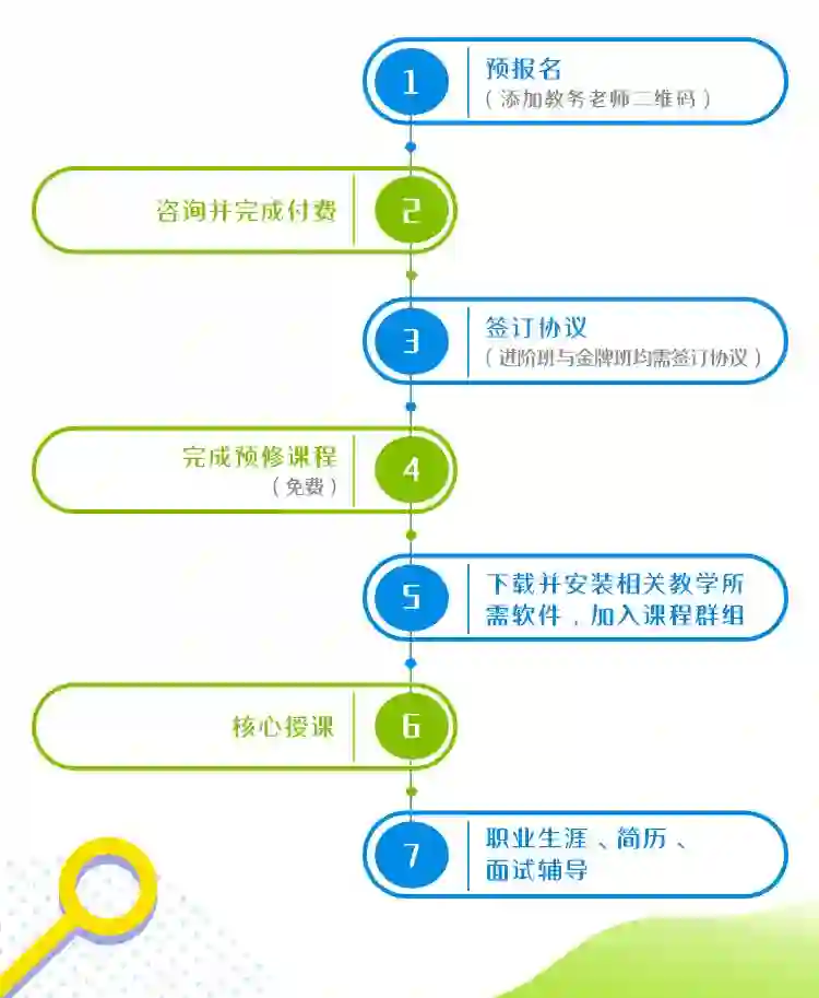 前2次课不满意无理由退还学费:正式开课后,前2次课不满意,学员可提出退还学费,课程组将无理由退还学费。