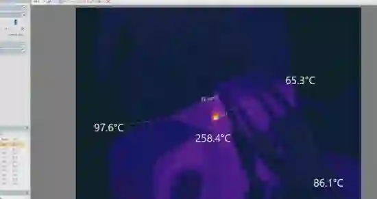 把 12VHPWR 电源线连接到 RTX 4090 的插口上,但不插好,短短几分钟之后,松动连接的位置就产生了 250℃ 以上的高温,导致连接器熔化,冒出烟雾和气泡。