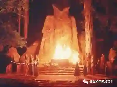 这个仪式为活人献祭,整个过程虽然不是太长,但却将数名活人放进一个类似猫头鹰的巨像裡,先由祭师唸一段祭文后, 一艘小船载著一名使者,顺著河流过来。待这名使者上岸后,开始对猫头鹰巨像点火,将裡面所有被献祭的活人,活活烧死。接著所有参观者开始喝酒狂欢,庆祝这个新世界秩序的活人献祭仪式完成。