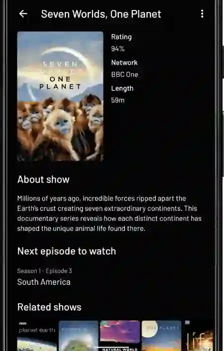 我们有一个示例应用: Tivi,它可以展示 TV 节目的详细信息。关于节目信息,应用内罗列了每一季和每一集。当用户点击其中的某一集时,该集的详细信息将以点击处展开的动画来展示 (0.2 倍速展示):