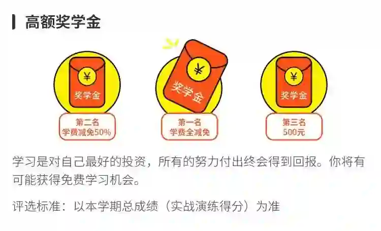 除了详实、系统的学习内容外,还为你配套准备了完善的教学服务和高额奖学金。