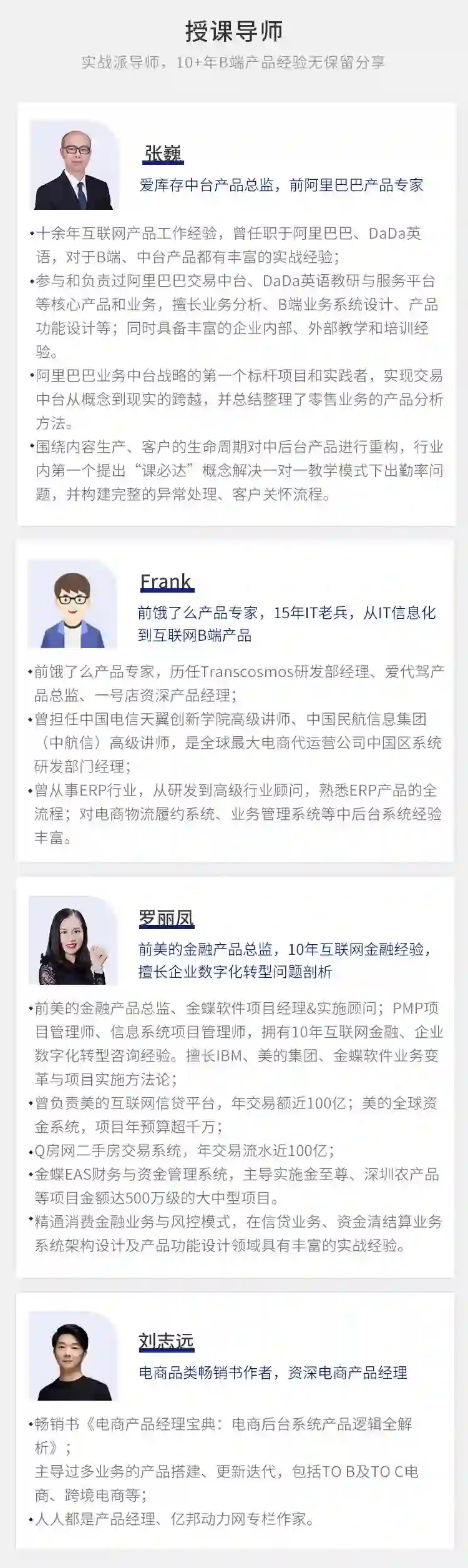 1、4位拥有10年+实战经验的老师,带你征战B端产品