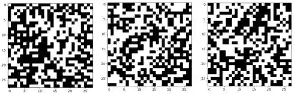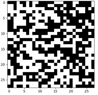 输入是一个28x28像素的白色图像,输出是一个大小相同的图像,带有黑色或白色的二值化像素。