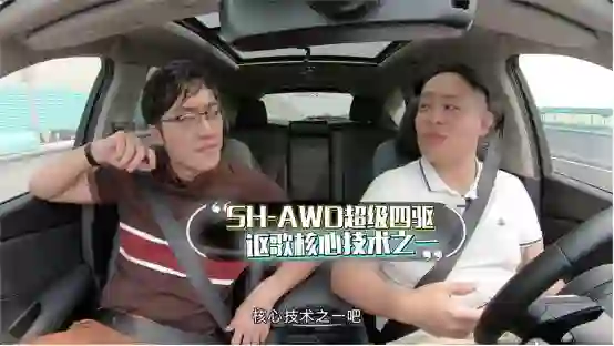 贾轩驾驶的时候,还是忘不了自己的本职工作,车主和销售总监身份来回切换,不停给老王安利 SH-AWD 超级四驱系统,详细讲解这套四驱系统的技术,引得老王直呼想体验。
