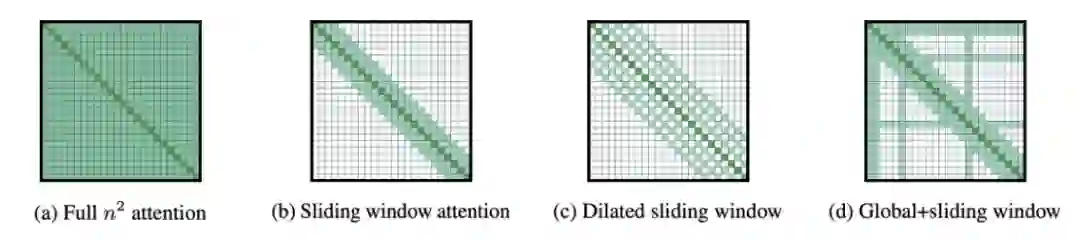 Longformer 使用了一种计算时间可以线性地随着序列长度增长而增长的注意力机制(窗口化的局部上下文的自注意力和由终端任务激活的全局注意力)。