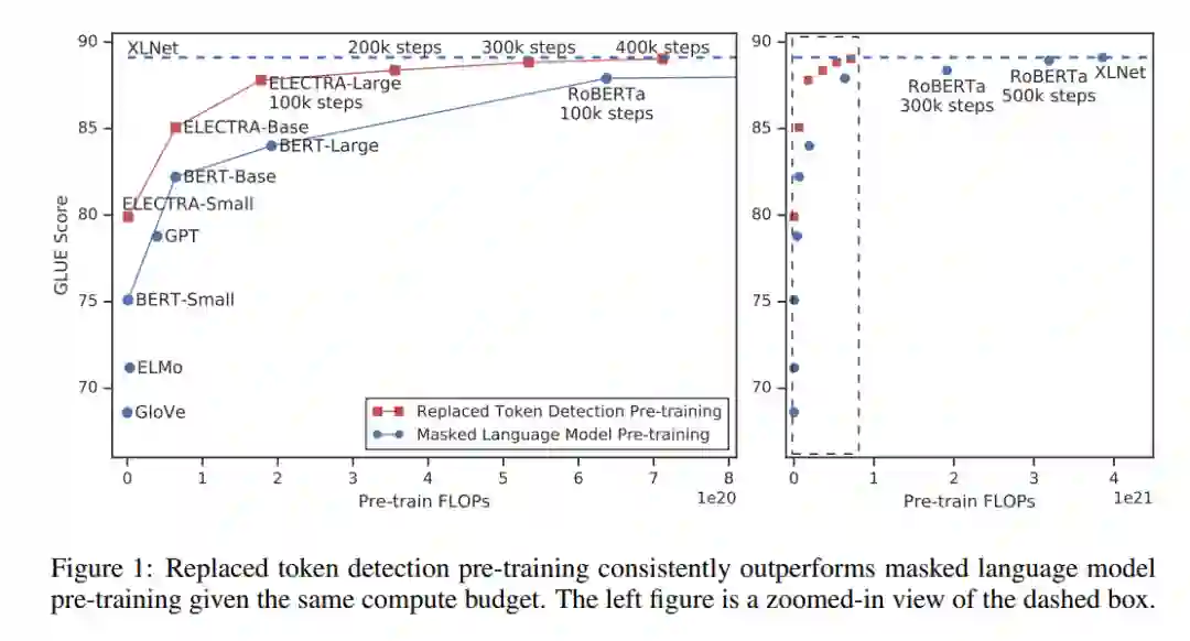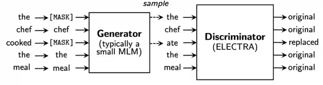 目前最佳的方法是 ELECTRA,该方法使用一个生成器替换输入序列中的词例,然后使用一个判别器预测哪个词例被替换了。