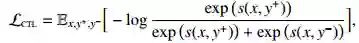 对比学习假设一些观测到的文本对之间的语义相似度要高于随机采样得到的文本对。通过最小化下面的目标函数来学习文本对 (x, y) 的得分函数 s(x, y):