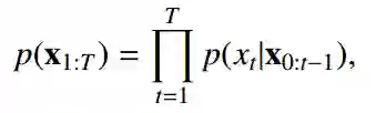 给定文本序列 x_(1:T) = [x_1, x_2,...,x_T],其联合概率 p(x1:T) 可被分解为: