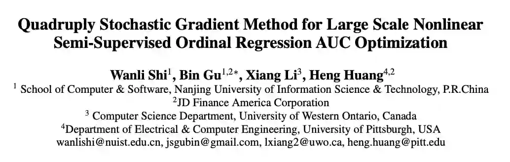 5、基于四重随机梯度的大规模非线性半监督有序回归AUC优化
