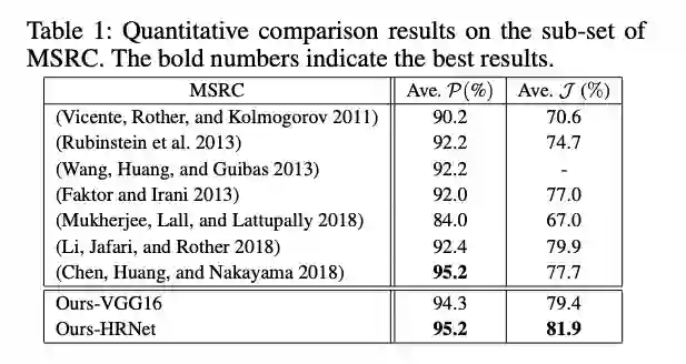 所提出的模型采用端到端训练。在四个图像协同分割基准数据集上的大量实验表明,与最新方法相比,我们的方法具有更高的精度。