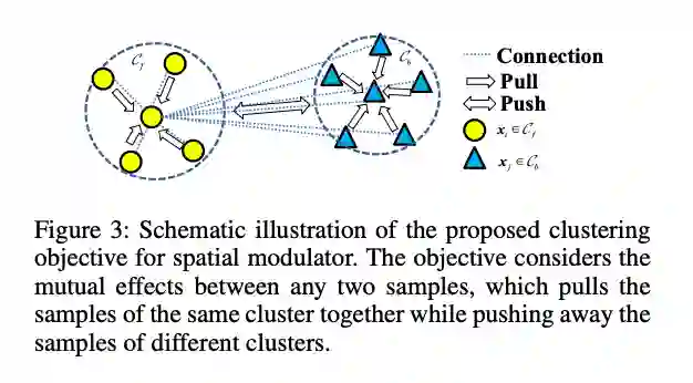 空间调制器通过无监督学习获取图像特征描述符的相关性,学习得到的掩模可以在抑制背景的同时定位目标物体。我们将语义调制器建模为一个有监督的图像分类任务。