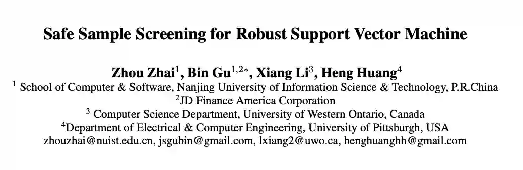 在我们最新的工作,我们设计了新的快速数据筛选算法,快速找到并去掉代表性差的数据,在不影响预测结果的前提下,大大降低训练数据的数目,从而解决了鲁棒支持向量机无法在大数据上应用的难点。