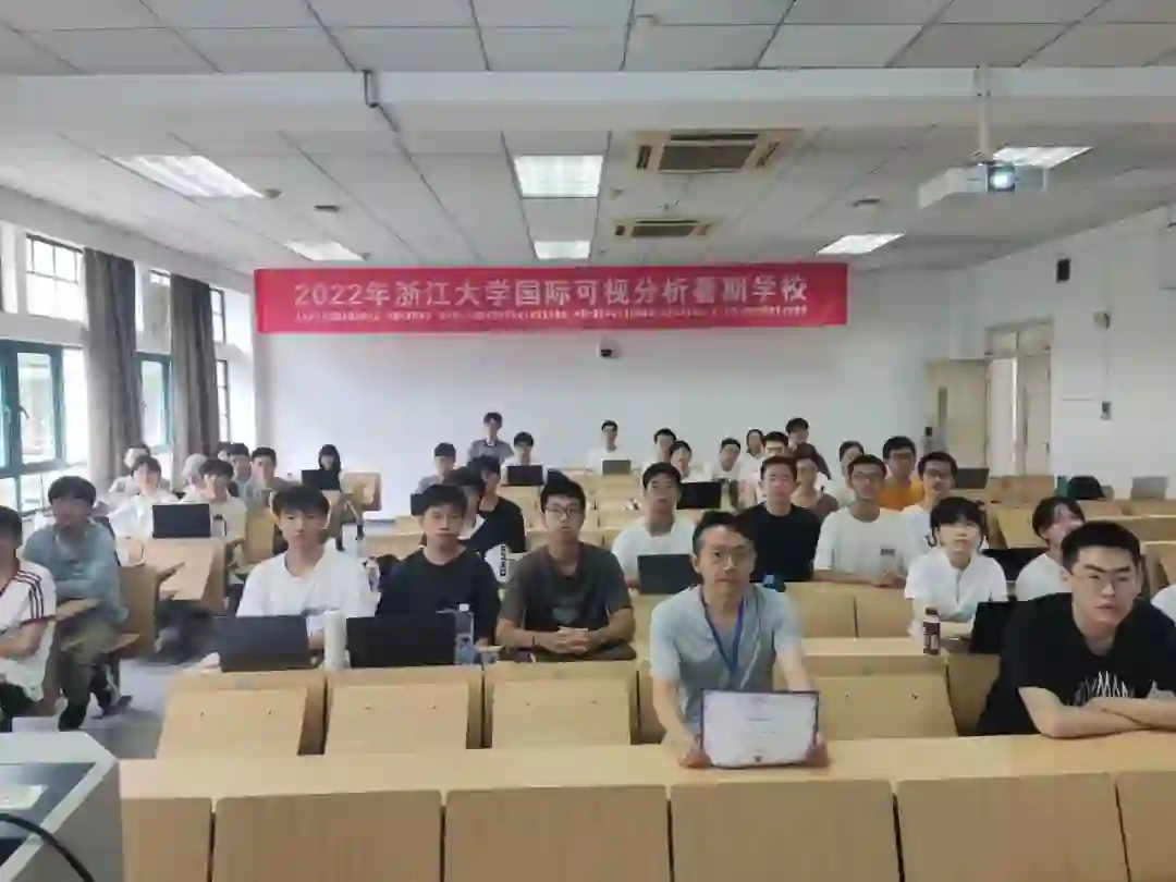 2022年6月27日至7月8日,“第十四届浙江大学可视化与可视分析暑期学校”在浙江大学紫金港校区成功举办。本次活动由中国图象图形学学会、中国计算机学会主办,中国图象图形学学会人机交互专业委员会、中国计算机学会计算机辅助设计与图形学专委会、浙江大学计算机辅助设计与图形学国家重点实验室联合承办。本次暑期学校采取线上、线下结合的方式举行,并且面向全国学生授课。本届课程的重点是大数据可视化与可视分析中的基础原理和关键技术。授课分两个部分:基础课程授课(十个中文讲座)和前沿进展报告(九个全英文讲座)。教师们在课堂上开展系统性的教学,介绍可视化领域最新的研究进展,并分享业界优秀的实战案例。此外还有丰富的实践环节,从理论到实操全方位带学生们领略大数据可视化实际的魅力,本次暑期学校吸引了超过600名来自各大高校的学生和可视化爱好者。