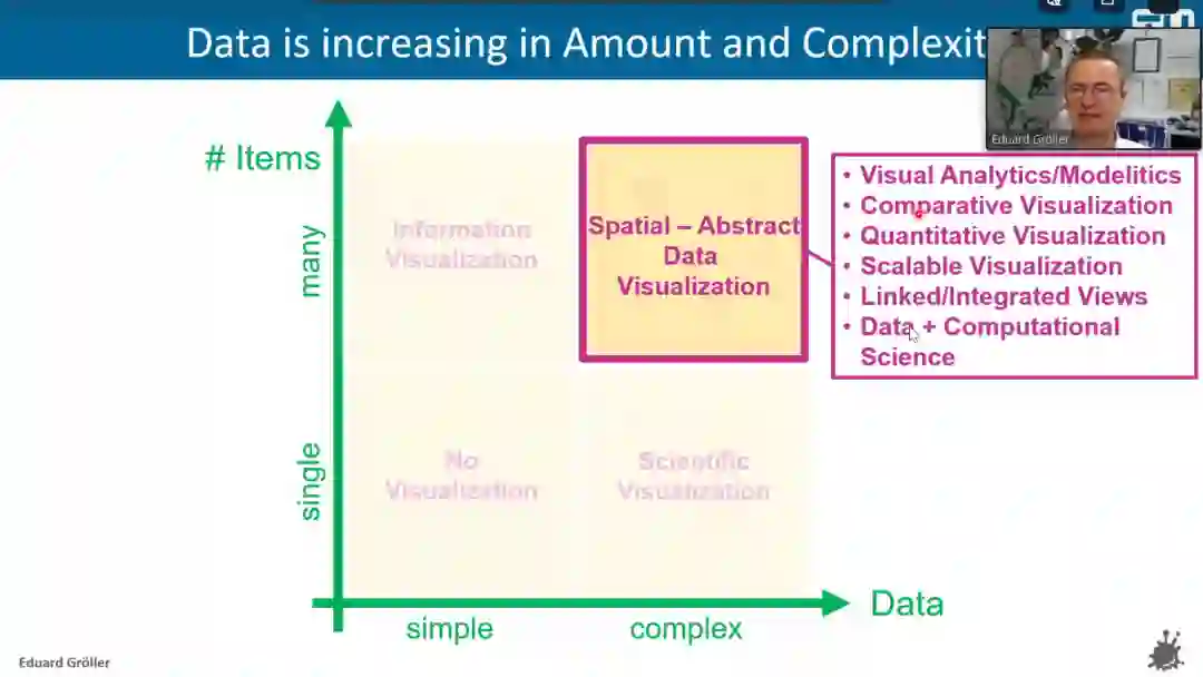 随后,来自维也纳技术大学(TU Wien)可视计算与人机交互中心的Eduard Gröller教授为同学们带来了题为“Interactive Visual Analytics and Modelitics”的前沿报告。Gröller教授生动形象地为同学们讲解了多种多样的视觉集成方法及相关应用案例,比如如何将空间和抽象数据更好地结合起来形成合理的交互分析回路。