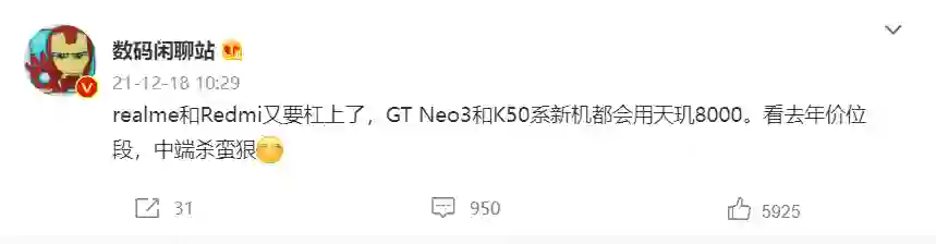 Redmi / realme 天玑 8000 新机曝光