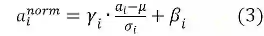 为经过规范化操作后的规范后值。整个规范化过程可以分解为两步,第一步参考公式(1),是对激活值规整到均值为0,方差为1的正态分布范围内。其中,