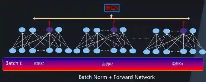对于前向神经网络来说,BatchNorm在计算隐层某个神经元k激活的规范值的时候,对应的神经元集合S范围是如何划定呢?图6给出了示意。因为对于Mini-Batch训练方法来说,根据Loss更新梯度使用Batch中所有实例来做,所以对于神经元k来说,假设某个Batch包含n个训练实例,那么每个训练实例在神经元k都会产生一个激活值,也就是说Batch中n个训练实例分别通过同一个神经元k的时候产生了n个激活值,BatchNorm的集合S选择入围的神经元就是这n个同一个神经元被Batch不同训练实例激发的激活值。划定集合S的范围后,Normalization的具体计算过程与前文所述计算过程一样,采用公式3即可完成规范化操作。